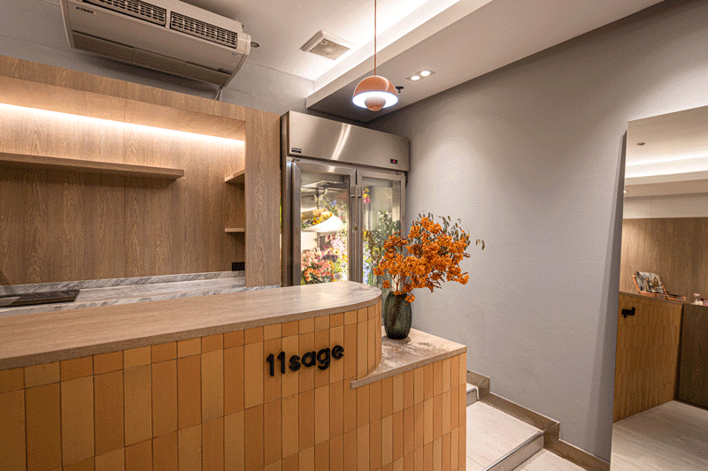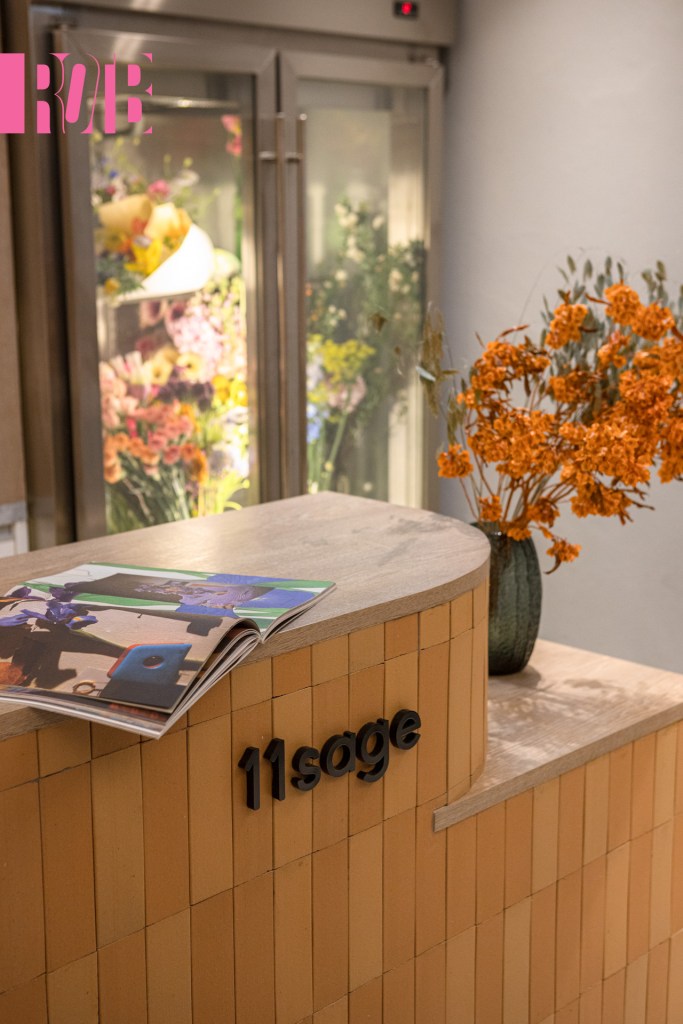 “ถ้าไม่มู เลข 11 ก็มาจากเลขสาทรซอย 11 ส่วน Sage ก็มาจากสีเขียวที่เราชอบ” เอยหัวเราะก่อนเล่าต่อ “แต่ถ้ามู 11 เลขนางฟ้า (Angel Number) ส่วน Sage คือใบเสจที่ชาวตะวันตกชอบเอามามัด และจุดปัดเป่าไล่พลังลบ” จากนั้นเอยก็ชี้มุมเครื่องหอมของร้าน