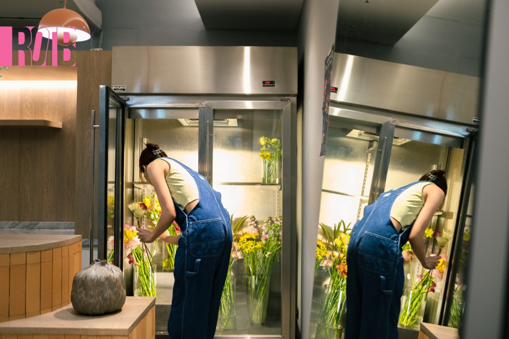 “แต่กว่าที่มันจะสวยขนาดนี้คือตัดก้าน ดึงใบออก เปลี่ยนน้ำทุกวัน รายละเอียดเยอะมาก พื้นที่เห็นเรียบ ๆ ช่วงที่ดอกไม้มาลงคือเขียวเละไปหมด ช่วงแรกที่ทำ (วันที่ดอกไม้ลง) คนเดียวคือตื่นแปดโมงขึ้นห้องตีสามตลอด จนเรารู้สึกว่าเยอะไม่ไหวแล้วเพราะมันหนักเกินคนเดียว” จากนั้นเอยก็หาผู้ช่วยมาแบ่งเบา และพร้อมกันนี้ก็เข้าโซเชียลมีเดียหาชีวิตของนักจัดดอกไม้ในต่างประเทศ ซึ่งมีชะตากรรมที่ไม่ต่างกัน