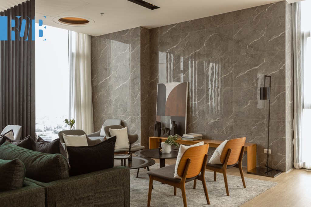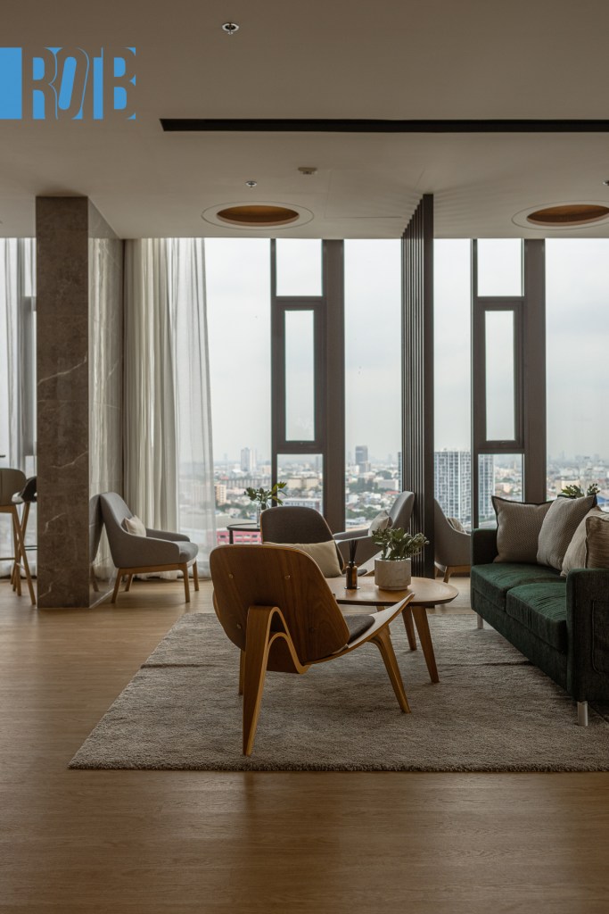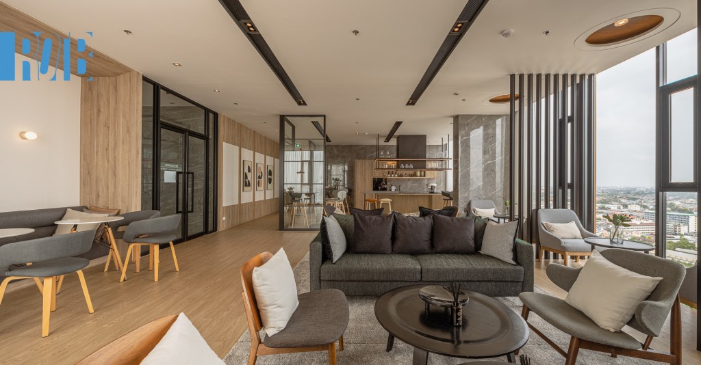 บนชั้นเดียวกันนี้ยังมี Sky Lounge ห้องโถงนั่งเล่นขนาดใหญ่ ตกแต่งมุมต่าง ๆ อย่างโปร่งสบายและตอบการใช้งานหลากหลาย มี WiFi คอยบริการ สามารถนั่งทำงานได้จริงจัง ส่วนการสังสรรค์ก็จริงจังเช่นกัน เพราะมี Co-Kitchen Space ครัวครบครัน มีอุปกรณ์พร้อมปรุง เช่น ตู้เย็น เตาไฟฟ้า เตาอบ