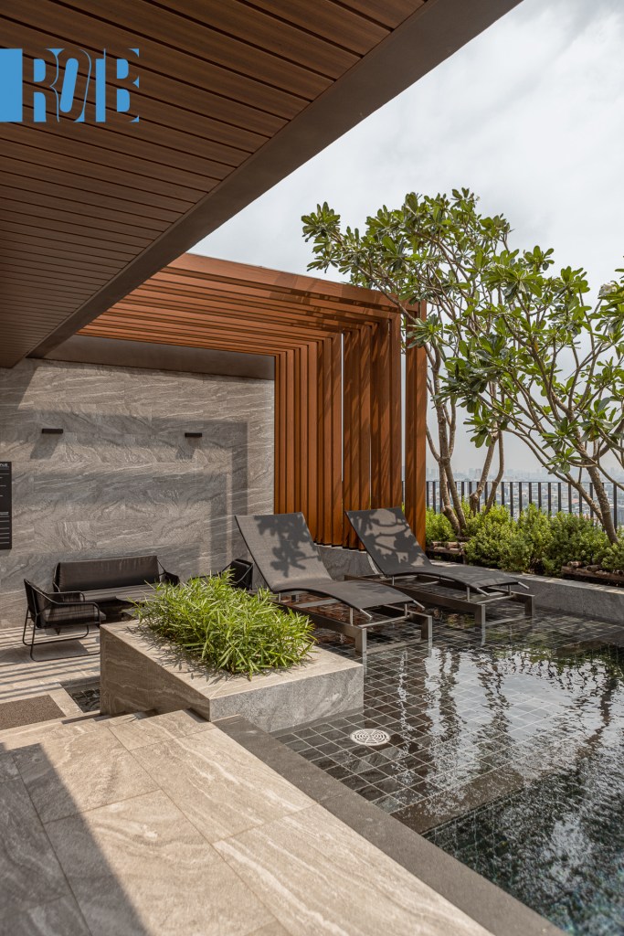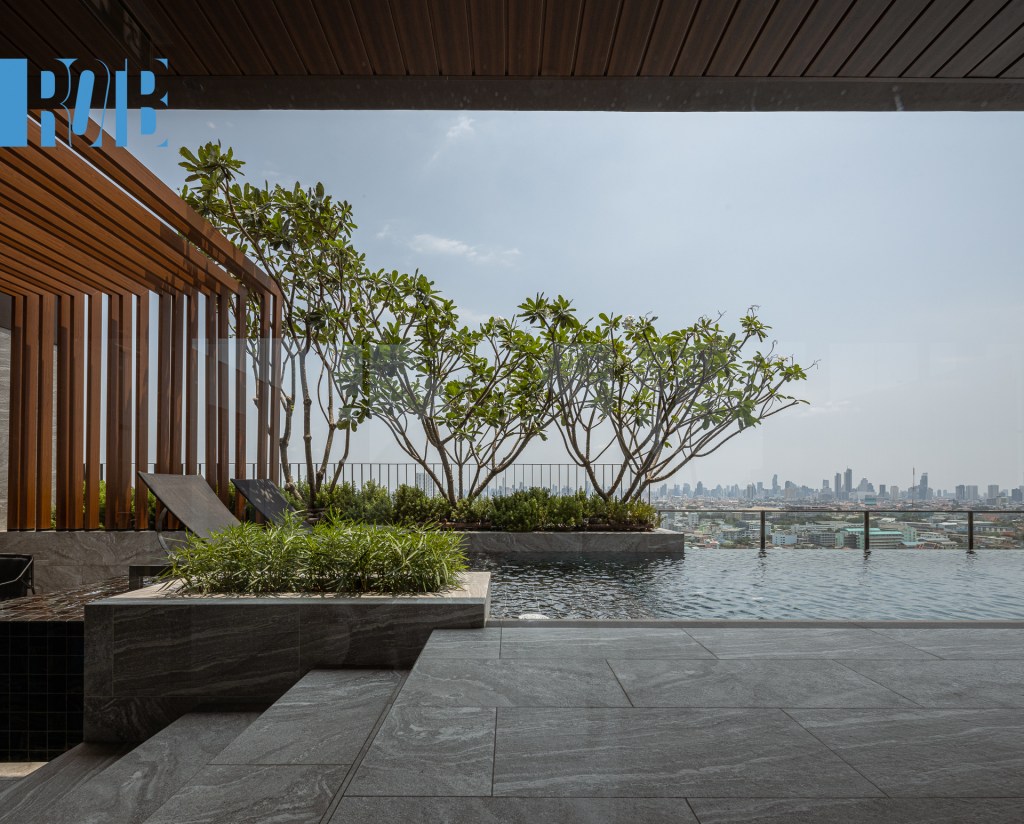 จุดหย่อนใจหลักอยู่บนชั้น 22 เมื่อออกจากโถงลิฟต์จะพบว่ามีสระว่ายน้ำและทิวทัศน์มหานครคอยทักทายอยู่ Infinity Edge Pool เป็นสระระบบเกลือทรงสี่เหลี่ยมผืนผ้ายาว 24 เมตร ลึก 1.2 เมตร ขอบอาคารบริเวณนี้ล้อมด้วยผนังกระจกเพื่อไม่ให้ทิวทัศน์ต้องเสียรสชาติ