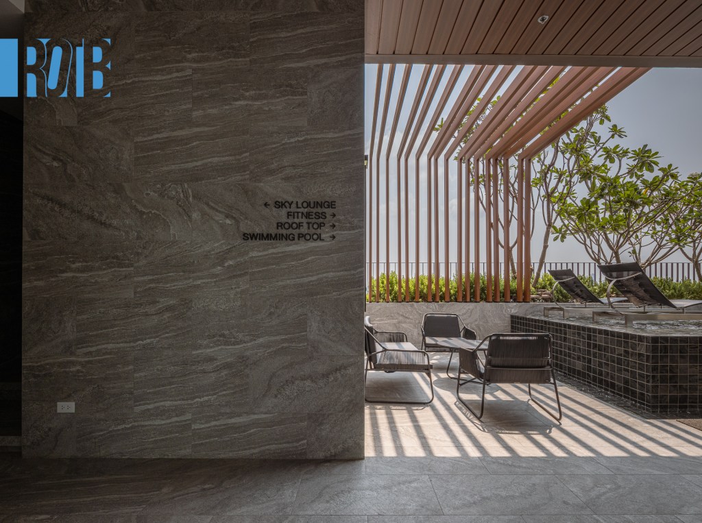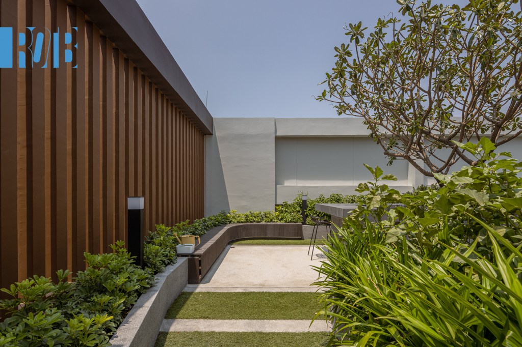 ไม่ใช่แค่ครัวเท่านั้น แต่มีวัตถุดิบแถมด้วย โถงแสนชิลห้องนี้มีประตูไปยัง Sky Gardenista สวนระฟ้ามีมากกว่าความสวยเพราะต้นไม้ที่ปลูกประดับนั้นกินได้ด้วย หากลูกบ้านที่นี่อยากประกอบอาหารก็ซื้อแค่ไก่แล้วมาเด็ดใบกะเพราแดงตรงนี้ก็ได้ นอกจากประโยชน์ใช้สอยด้านโภชนาการแล้ว ประสิทธิภาพความชิลก็ไม่เป็นรองที่ ไหน ถ้าเปรียบสวนแห่งนี้เป็นห้องซึ่งมีท้องฟ้าเป็นเพดาน ผนัง 2 ด้านที่ตรงข้ามกันมีลักษณะเป็นระแนงแนวตั้ง การออกแบบดังกล่าวทำให้พื้นที่ตรงนี้ไม่ได้ตัดขาดกับโลกภายนอกและยังเป็นทางลมผ่านอีกด้วย